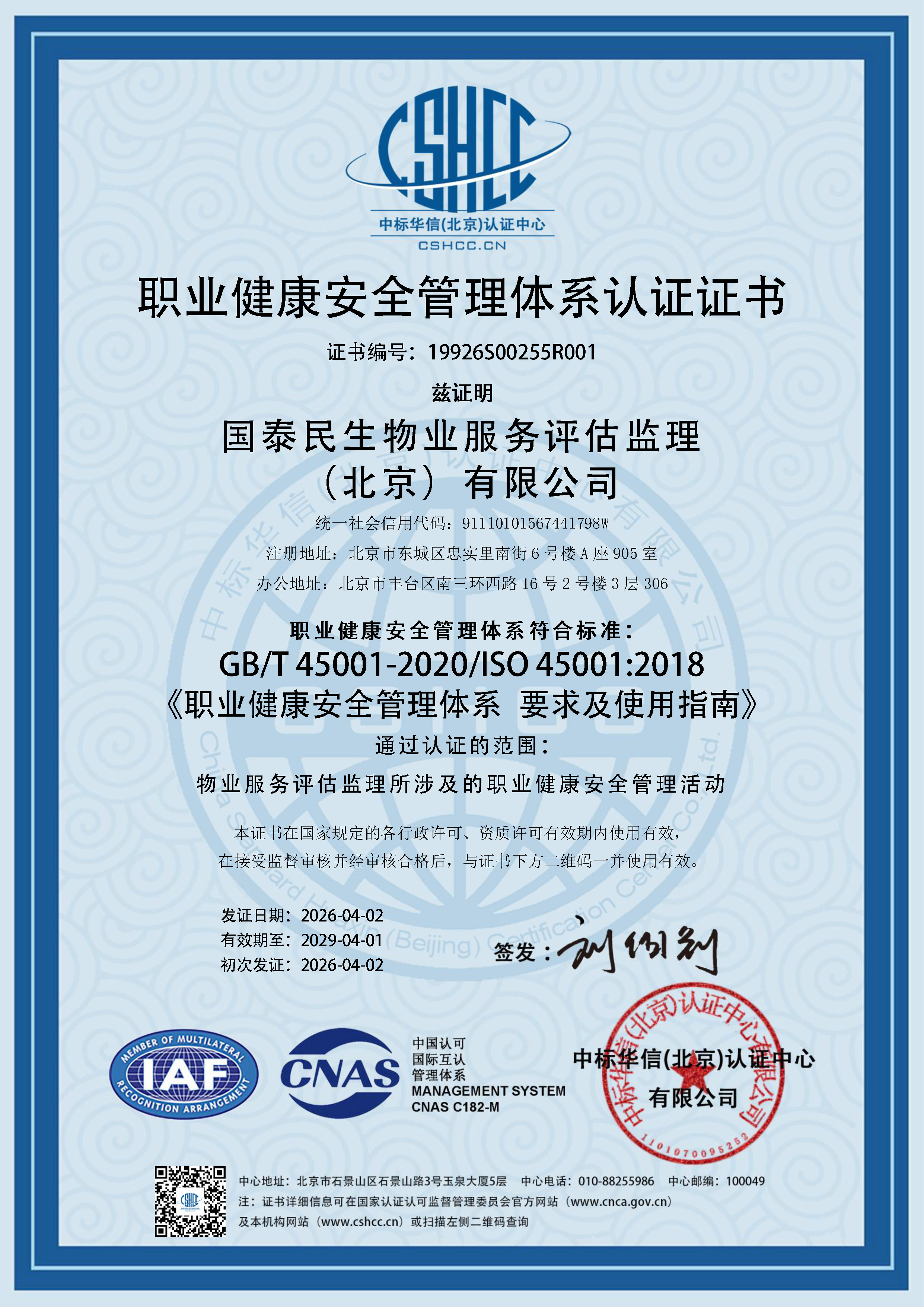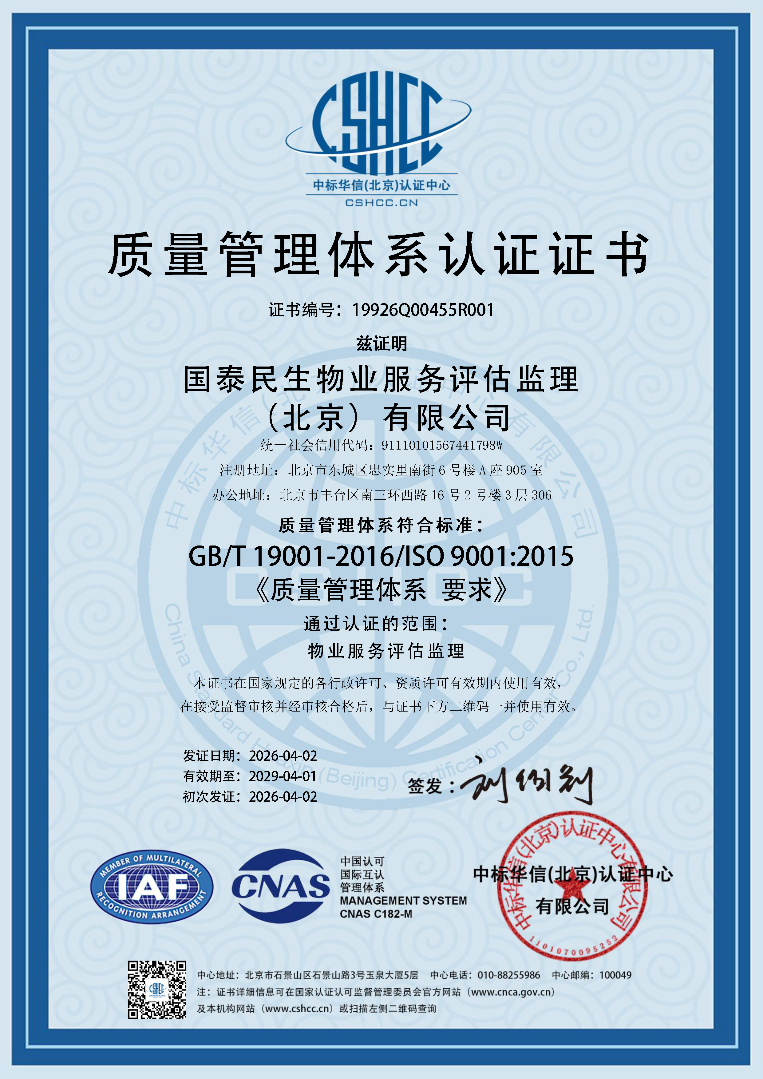 国泰民生物业服务评估监理(北京)有限公司